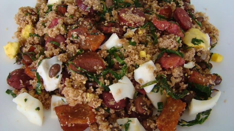 Linguinçinha ovo frito bacon calabresa banana da terra torresmo feijão farinha cheiro verde