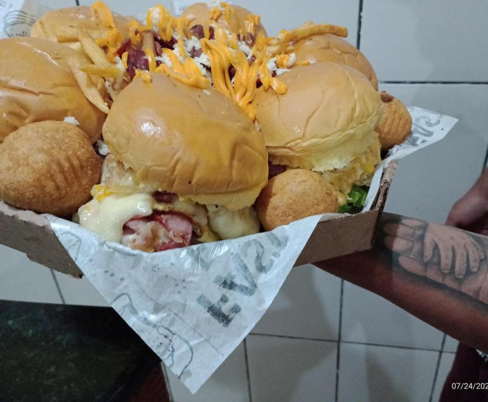 Lanche na caixa com 2 x tudo +salgados+ batata frita+ calabresa+bacon+cheddar