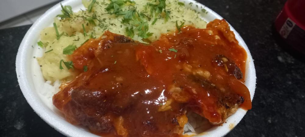 Marmitex filé de frango empanado á moda G